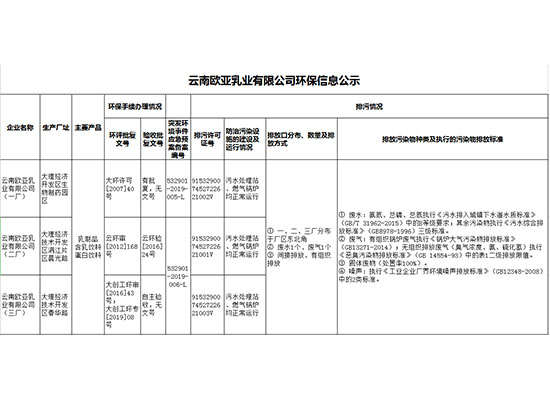 云南歐亞乳業(yè)有限公司(三廠)信息公開(kāi)
